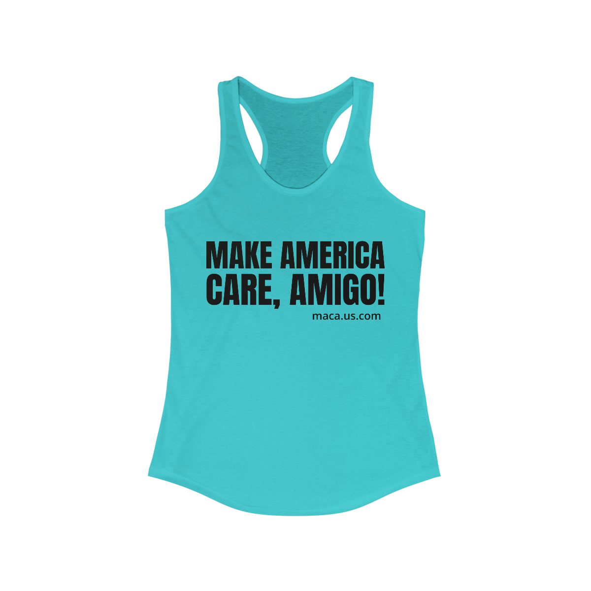 Women’s Ideal Racerback Tank – MAKE AMERICA CARE, AMIGO!